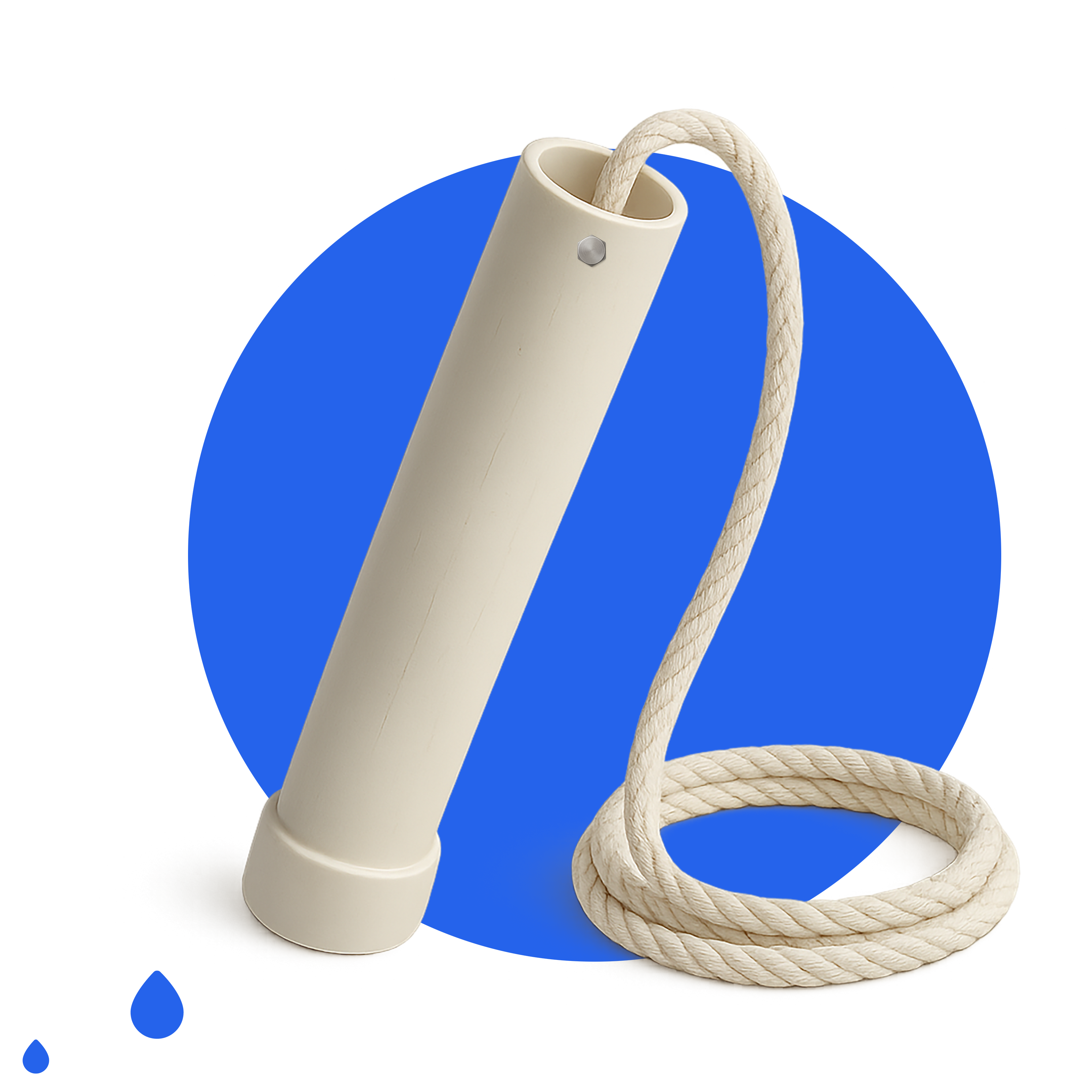 Lower your BlackoutBucket down the well shaft with rope, water enters bottom of bucket, retrieve once full.